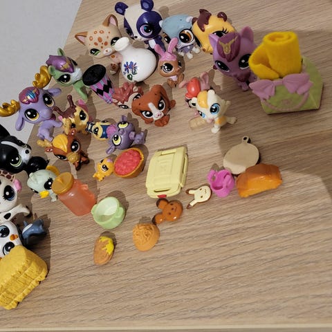 Littlest Pet Shop lelukokoelma, jossa useita muovisia eläinhahmoja. Kokoelma sisältää erilaisia eläimiä, kuten koiria, kissoja ja muita eläimiä. Yhteensä 58 kpl.