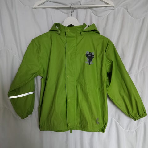 Zara lasten sadetakki, koko 122 cm. Vihreä unisex-mallinen takki, jossa huppu ja vetoketjukiinnitys edessä. Valmistettu polyesteristä. Sopii arkeen ja ulkoiluun lapselle, jonka pituus on noin 122 cm.