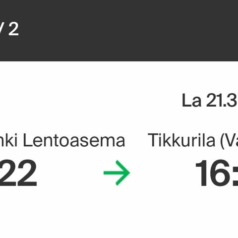 Junalippu Seinäjoki - Helsinki lentoasema 5.3