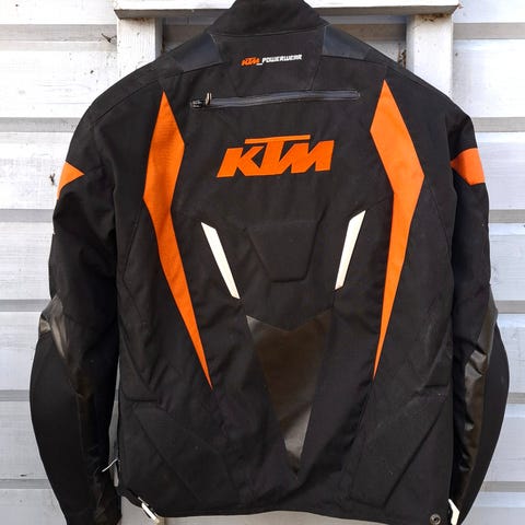 KTM PowerWear ajotakki moottoripyöräkäyttöön. Oranssit kohdat päässeet auringossa haalistumaan, mutta muuten takki on täysin ehjä. Takissa on irroitettava sisävuori. En postita, mieluiten nouto.