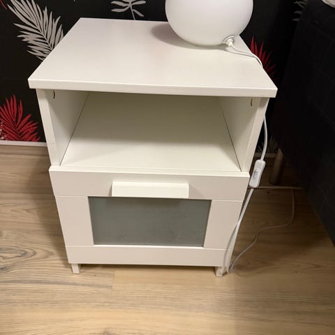 Muuten hyvässä kunnossa paitsi toisessa yöpöydässä on kulmasta lähtenyt pieni pala pois (katso kuva) ja toisessa laatikko sisältä ei täydellinen. Hinta molemmille yhteensä. Vain nouto.