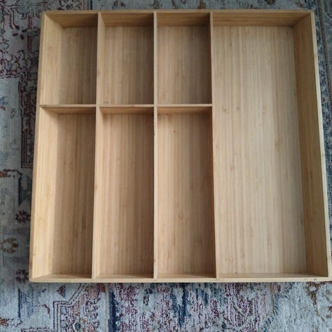IKEA UPPDATERA aterinlaatikko keittiön laatikkoon. Valmistettu vaaleasta bambusta. Mitat noin 32 x 50 cm. Useita lokeroita erikokoisille aterimille ja keittiövälineille. Soveltuu aterimien ja pienten keittiötarvikkeiden säilytykseen ja järjestelyyn laatikossa.