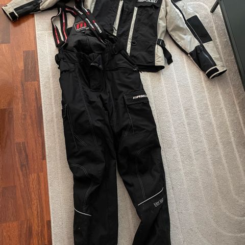 Käytön jälkiä jo löytyy mutta hintakin sen mukainen... Pikku reikä polvessa johon laitan puvun väritykseen sopivan paikan... Löytyy myös toinen samanlainen ajopuku vähän eri sävyisenä jos tarvii vaikka kaksosille... 150/160 eli lasten/nuorten kokoa... Sweep ajopuku, johon kuuluu takki ja housut. Koko 160 cm. Väri keltamusta valkoisilla ja oransseilla yksityiskohdilla. Puvussa on korkea kaulus ja vetoketjut edessä sekä useita tehostevärejä parantamassa näkyvyyttä. Materiaali on ajovarusteille tyypillistä kestävää kangasta, jossa on verkkovuori. Soveltuu esimerkiksi nuoren moottorikelkka- tai moottoripyöräkäyttöön tai muuhun ajovarustekäyttöön sääsuojaksi ja näkyvyyden parantamiseksi.