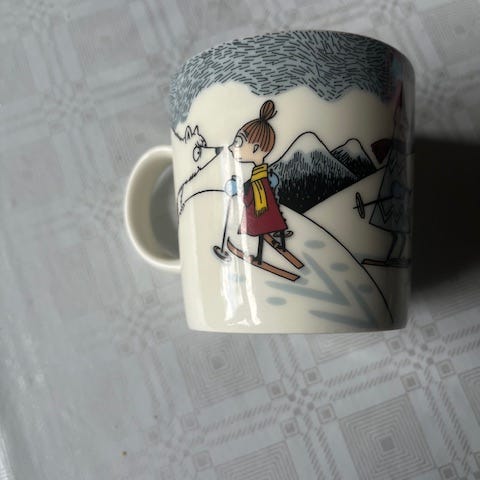Arabian Muumimuki Hiihtäen kera herra Virkkunen -muki
