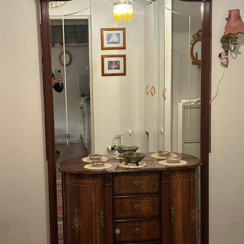 Puinen lipasto peilillä