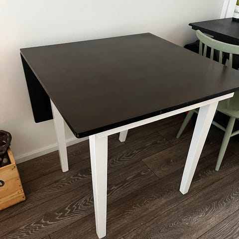 Täyspuinen klaffeilla jatkettava ruokapöytä, vintage 1970-luku. Pienimmillään 85x59 cm + klaffit 51 cmx2.