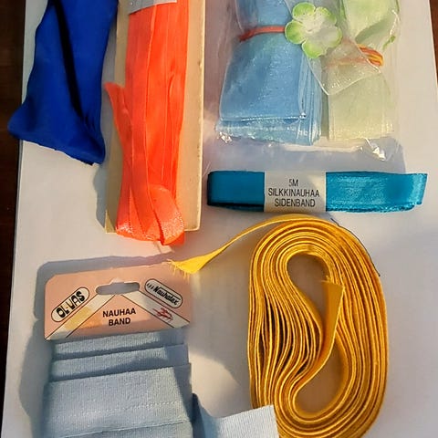 Super Elastic Band kuminauhasetti ompeluun. Useita eri leveyksiä ja pituuksia valkoista joustokuminauhaa, mustaa pyöreä kuminauhaa, sinistä kuminauhaa, ja sini/valkoista. Mustaa nauhaa ja valkoista, 1pussi valkoista verho nauhaa. Sopii esimerkiksi vaatteiden, alusasujen ja muiden tekstiilien vyötäröihin, hihansuihin ja muihin kohtiin, joissa tarvitaan joustavaa nauhaa. Nauhat on pakattu erillisiin nippuihin ja pusseihin, joissa on merkinnät leveydestä ja pituudesta helpottamaan käyttöä ompeluprojekteissa.
