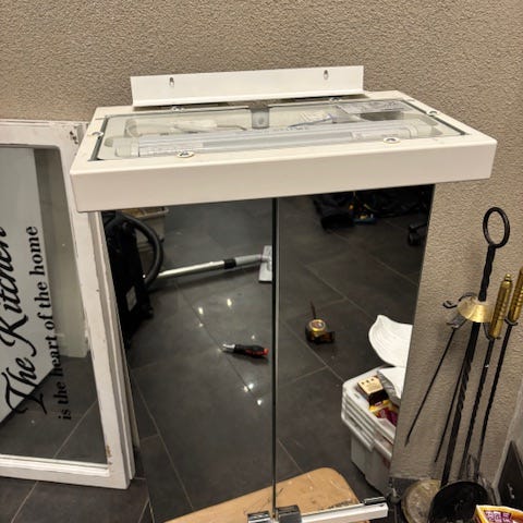Myydään peilikaappi, kahdella spot valolla. Leveys 70cm, korkeus 65cm, syvyys 15cm.
