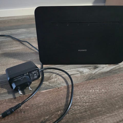 Huawei 4G LTE -reititin valkoisena. Pakettiin kuuluu sisäreititin, ulkoinen 4G LTE -antenni, virtalähde sekä pitkä antennikaapeli.