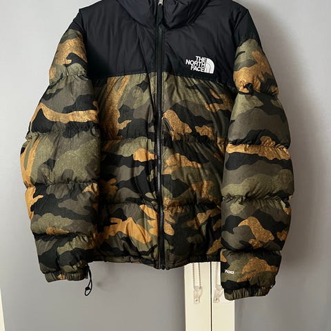 Myydään violetti The North Face 1996 Nuptse 700 talvitakki.