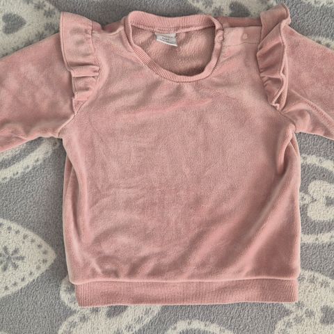 Monia frilla pitsikoristeinen neulemekko. Meillä ollut paljon käytössä, ei oo kaivannut silittämistä. Koko 74, meillä käytettiin kokoon 80 asti ja vähän yli, kun oli ihan lemppari mekko.