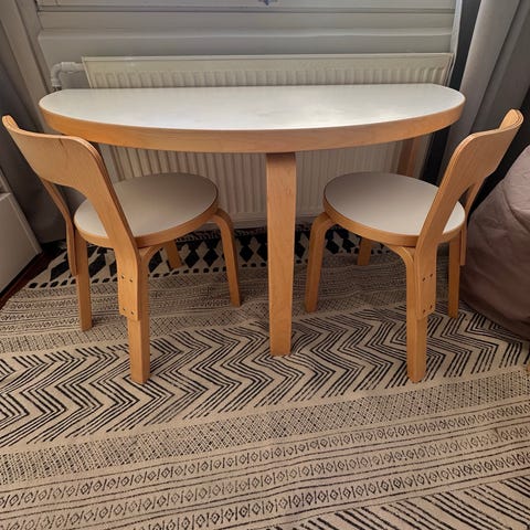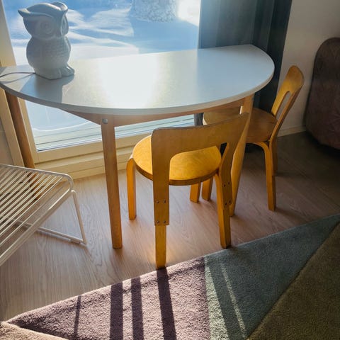 Artek L-jalka 56 cm korkeus, leveys 5,5 cm. Sopii esim. Artekin pyöreän pöydän muuttamiseksi lastenhuoneen pöydäksi. Olleet käytössä noin 7 vuotta, kunto vastaa edelleen lähes uutta.
