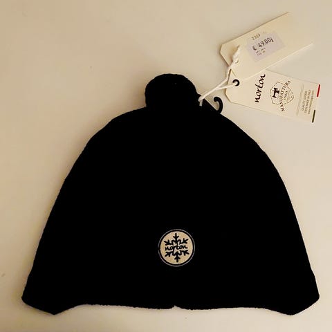 Kerran käytetty musta-hharmaa pipo.
