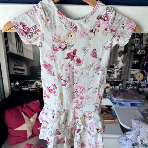 Gugguun kaunis frillamekko lyhyillä hihoilla, koko 122.