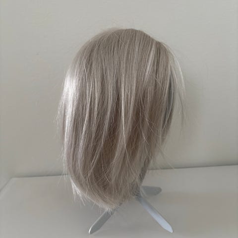 Ellen’s Changes peruukki, polkkamittainen malli. Hiuksissa vaalea, monisävyinen sävy, jossa tummempi tyvi ja vaaleammat latvat. Suora leikkaus, pituus noin leukalinjan alapuolelle. Toimitetaan alkuperäisessä Ellen’s Changes -laatikossa kuvien mukaisesti.