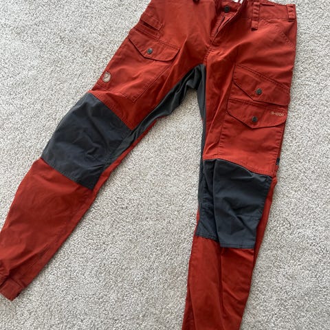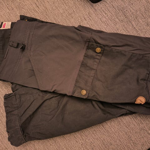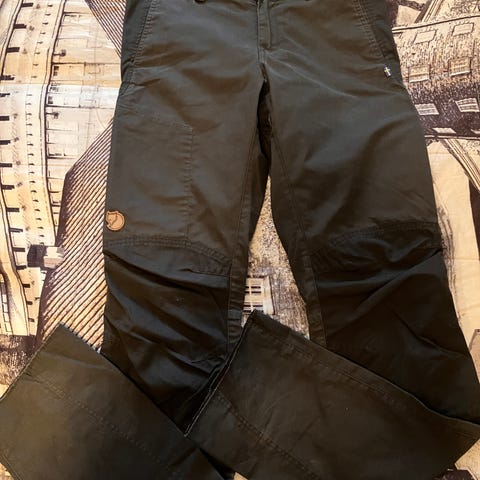 Erittäin hyväkuntoiset ja muutamia kertoja käytetyt ulkoiluhousut naiselle. Kangas käsitelty pesun jälkeen Fjällräven Greenland Waxilla. Vahakäsittelyssä olen käyttänyt fööniä silitysraudan tilalla.