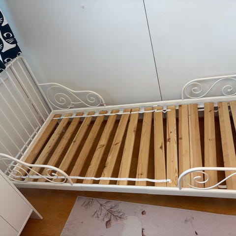 Hyvässä kunnossa laten sänky. Myydän patjan kanssa. Vähän piirustukset pinnalla