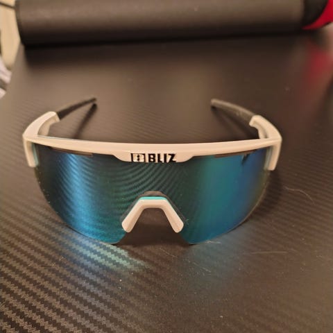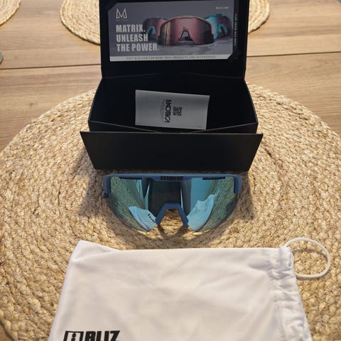 Käyttämättömät unisex urheilulasit. Mukana suojapussi ja säilytyslaatikko.