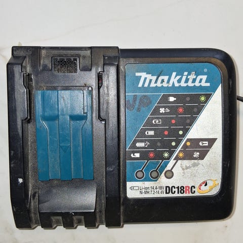 Maali/massa jälkiä, pientä likaa, toimii kuitenkin. Ja nappulat liikkuu. Ota oma 18V akku, jos haluat testata.