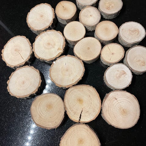 Puinen puunviipale, halkaisijaltaan noin 25 cm. Materiaalina luonnonpuu, reunoissa kuoripinta. Paksuus noin 2–3 cm. Sopii esimerkiksi koristealustaksi, askarteluun tai pientavaroiden alustaksi. Luonnonmateriaalista johtuen muoto ja sävy voivat vaihdella hieman.
