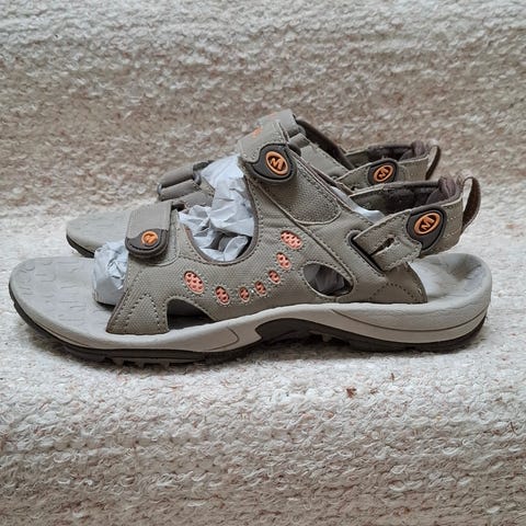 Myydään Merrell Vibram naisten sandaalit koko 38. Käytetty, mutta erinomaisessa kunnossa, tukevat metsäpolulla, hyvä pohja vaellukselle, hiekka/roskaa ei tule varpaiden väliin, näitä ei enää tehdä.