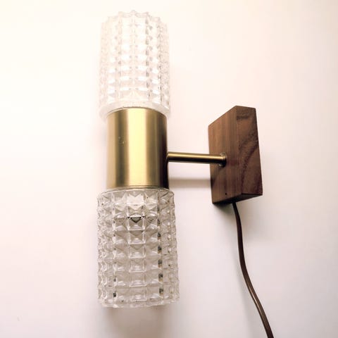 Kaksi vanhaa vintage teak messinki seinävalaisinta