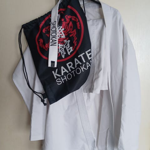 Karatepuku kamppailulajeihin. Valkoinen takki ja housut, perinteinen malli. Sopii karateen tai muihin vastaaviin kamppailulajeihin harjoituskäyttöön. Unisex-malli.