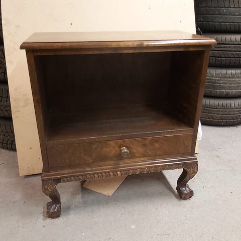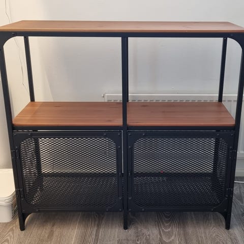 Kaikki kiinnikkeet ja avain tallessa. Kohtalainen kunto, jäljet (näkyy kuvissa) saa kaluste öljyllä peittoon. Vain nouto.