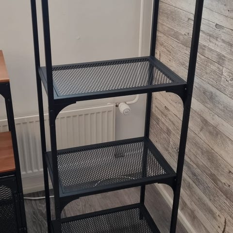 Yhteensä seitsemän hyllyä, joista kuusi irroitettavaa. Alaosan ja yläosan saa erikseen.