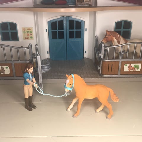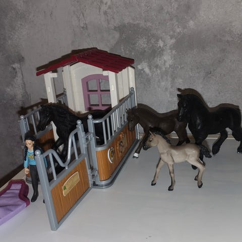 hyväkuntoinen schleich vikellyssetti. Mukana kaksi ukkelia, yksi hevonen ja sille varusteet ja kissanpentu ja peti. Neljä valkoista aitaa hieman tiukat. Hevosella leikitty paljon mutta silti hyvässä kunnossa. Vain haku kivikkokankaalta. Maksu mobile play.
