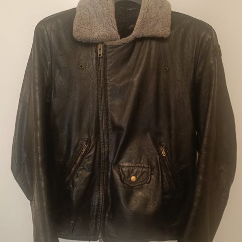 Ostettu vuonna 1989. Tehty briteissä paksusta härännahasta. Koko 50/52, takissa oleva numero 42 tarkoittaa jotain muuta.