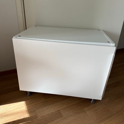 Hyväkuntoinen, toki käytetty stuva kaappi. Isompi käytöjälki ylälevyssä (kuva). Yläovet hiljentyvillä saranoilla. Hyvä lelujen säilytykseen esimerkiksi☺