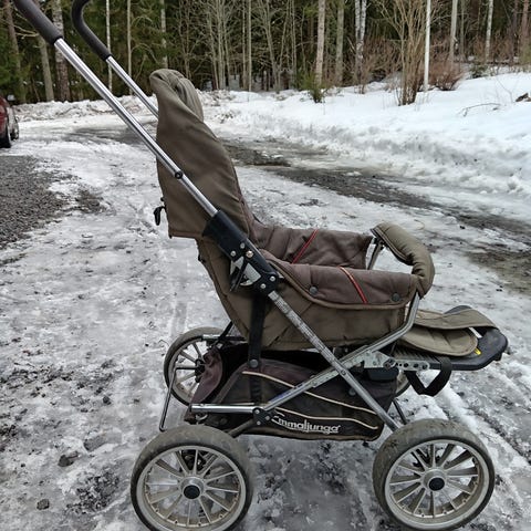 Foldable Stroller suitable for travelling. Light, compact and easy to carry.