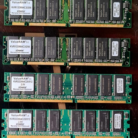 Myydään koko kuvassa näkyvä setti 1 GB - 4 GB:n muistikampoja kannettaviin tietokoneisiin ja pöytäkoneisiin. Myydään mielellään koko setti. Yksittäisten muistikampojen hinta 5 - 10 €/kpl.