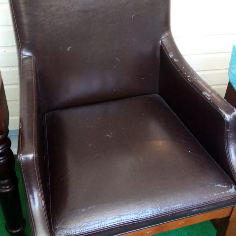 Myydään vanha nojatuoli, jonka entisöinti aloitettu. Entisöinti jäänyt kesken työkalujen puuttumisen vuoksi. Vanerilevy ostettu valmiiksi takaseinään. Aikaisemmassa oli vain pahvi. Toisen käsinojan hionta aloitettu. Uutta vaahtomuovia myös ostettu myös istuinosaan ja selkänojaan.