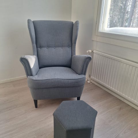 Ostan nojatuolin/laiskanlinnan. Kuva suuntaa antava. Hinta tuolin mukaan.