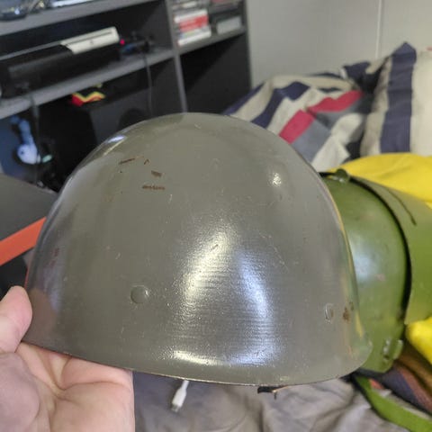 Original German M42 Helmet. ei kypärän nauhoja. Paljon alkuperäistä maalia