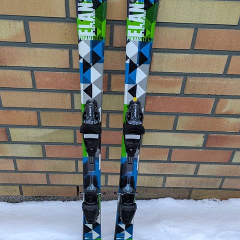 Laskettelusukset siteillä. Pituus 130cm. Huolletut ei juuri laskettu sen jälkeen.
