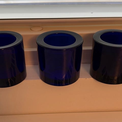 Iittala/ Marimekko Kivi-tuikut väri on turkoosi. Kaikki kolme kappaletta.