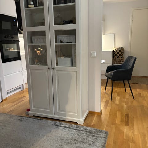 Myydään kaksi Ikean vitriinikaappia keittiöön. Yhden kaapin mitat ovat: leveys 80 cm, korkeus 70 cm ja syvyys 37,5 cm. Kaksi lasitasoa kuuluu kumpaankin kaappiin. Toisen kaapin oikeassa kyljessä pieni rikkouma kiinnityksestä. Molempien oikeissa kyljissä muutamat pienet ruuvin reiät kiinnityksistä. Toisen kaapin vasemmassa kyljessä ilmeisesti paikkaus. Katso kuvat. Kaapit ovat valmiiksi irrotettuina seinästä, valmiina noudettaviksi. Hinta 50 e kappale.