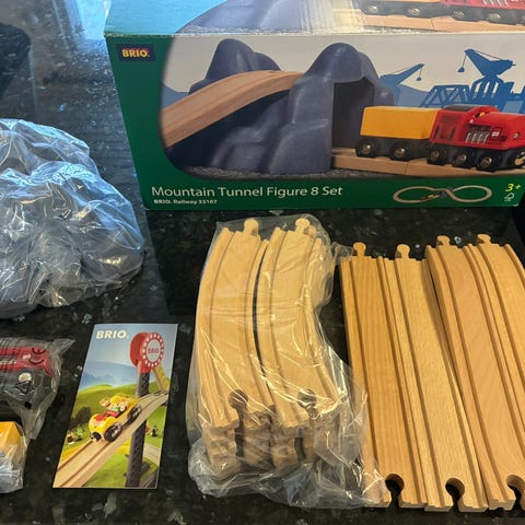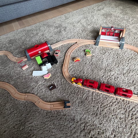 Brio puinen junarata, johon kuuluu punainen juna vaunuineen, puinen ratasarja kaari- ja suorine kiskoineen sekä metroasemaa esittävä asemaosuus hahmoineen. Setissä on myös punainen tunneli ja muutamia pieniä lisäosia, kuten puu ja hahmoja. Rata on yhteensopiva muiden Brio-puuratojen kanssa ja soveltuu leikkijunaradaksi lapsille.