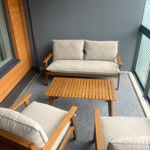Jyskistä ostettu kesä 2025 lopussa ovh 599euroa. Joudun haikein mielin myymään kalusto kun ei mahdu ei uuden asunnon parvekkeelle. Sisältää paksut pehmusteet jotka ollu sisällä aina yöt ja sade päivät sekä nyt talvi säilytyksen ajan.