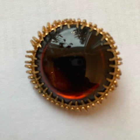 Kuvan mukainen vintage koru, hattuun laitettava neula. Korun nuppi tummunut, muuten hyvä kunto.