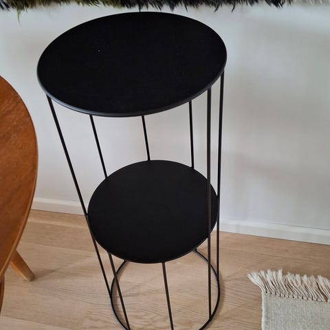 Metallinen kukkajalusta. Halkaisija 17,5cm ylhäältä, korkeus 63cm. Myynnissä Kotkassa Koivulassa
