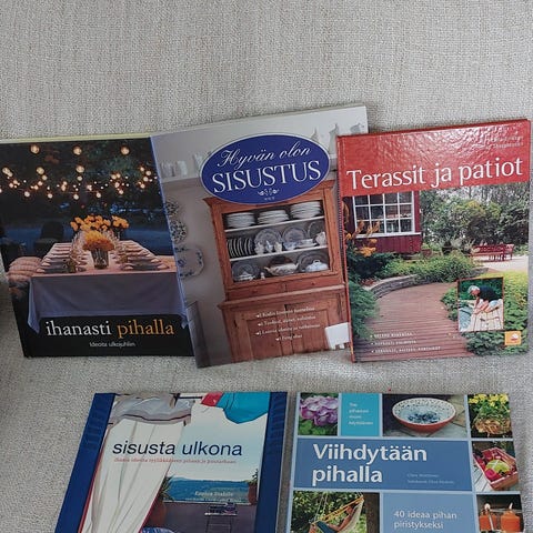 Siistissä kunnossa olevat sisustuskirjat.
