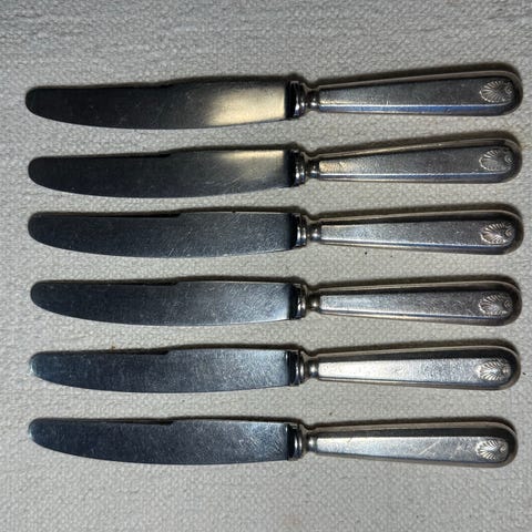 Kuvassa näkyvät Hackman Sorsakoski hedelmäveitset (6 kpl) alkuperäisessä laatikossa (N:o 423 RP). Kunto hyvä, näkyy kuvissa, muutamissa hyvin läheltä tarkasteltuna pieniä jälkiä (ks. kuvat), siksi laitoin kunnoksi kohtalainen - yleiskunto ikäisekseen kuitenkin hyvä. Pakkaus hieman revennyt avauskohdista. Hackman, hedelmäveitsi, Kaj Franck, Scandia, Sorsakoski, veitsi, Vintage. Nouto tai toridiili.