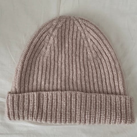 A More kauluri on kauniin sininen ja erittäin lämmin. Materiaali on 50 % mohair, 32 % polyamidi, ja 18 % villaa.