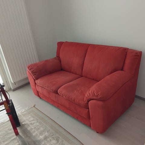 Kangas sohva, tummanharmaa. Kaksipaikkainen sohva, jossa pehmeät istuin- ja selkätyynyt. Verhoiluna tummanharmaa, hieman meleerattu kangas. Sohvassa on käsinojat molemmilla puolilla ja matalat, tummat jalat. Koko 150x85x55cm. Nouto 2.3. Klo 12-14 välillä.