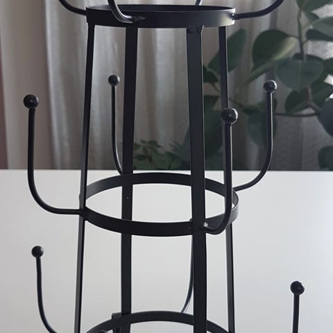 Myydään puiset talouspaperiteline ja kuuden mukin mukiteline yhteishintaan 18 €. Molempien valmistaja on Nedholm ja niissä on irrotettava kukkakoriste. Mukitelineen korkeus kukan kanssa n. 43 cm ja talouspaperitelineen n. 38 cm. Molemmat ovat hyväkuntoisia ja toimivia.