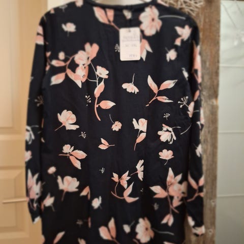 Nosh naisten paita, koko S. Materiaalina viskoosi. Paidassa on lyhyet hihat ja monivärinen, kirjava kuosi, jossa tummalla pohjalla vaaleanpunaliiloja kukkia. Jäänyt käyttämättä.
